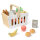 Ausstattung und Produkteigenschaften: robuster, schlichter Einkaufskorb aus Holz mit Tragegriff. Das Zubehör beinhaltet: 2 Baguettes, 2 Brötchen, 3 Äpfel, 4 Karotten, 4 Eier, 3 Bananen, 1 Milch, 1 Orangensaft, 1 Mehl, 1 Zucker. Perfekt für Kinder im Alter von 3(+) Jahren geeignet.