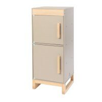 Eine Kinderküche aus Holz ist oft das Herzstück des Kinderzimmers. Eine tolle Erweiterung für dieses Spielerlebnis ist ein Kinderkühlschrank. Mein Lieblingsmodell ist der Holzkühlschrank Ficus von Musterkind. Mit seinem schlichten skandinavischen Design sieht dieser Kinderkühlschrank von Musterkind auch allein oder in Kombination mit einem Kaufladen gut aus. In der Musterkind-Welt lässt sich der Kinderkühlschrank Ficus am besten mit den Spielküchen Linum oder Magnolia kombinieren. Durch sein schlichtes Design passt der Kinderkühlschrank aber auch zu vielen anderen Kinderküchen und Kaufläden. Wie bei einem richtigen Kühlschrank befindet sich oben das Gefrierfach und unten das Kühlfach. Beide Fächer lassen sich mit einem stabilen Holzgriff öffnen. Der Ficus Kinderkühlschrank ist in den Farbkombinationen natur/weiß und Natur/warmgrau erhältlich.